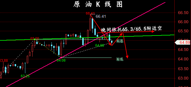 技术面:日线图来看,受助于美国库存下降,以及地缘冲突导致的供应担忧情绪影响,上周国际油价强势反弹 ,创下6月中旬以来最大周度涨幅。技术面上,K线表现为高位受阻后的小幅调整形态,显示多空分歧加剧 。结构上 ,均线系统逐步走平,短线行情可能进入震荡整理阶段。晚间重点关注上方65.5-66.0阻力,下方64.0支撑!个人预计:高空为主 ,低多为辅;WTI分水岭:65.0美元/桶!